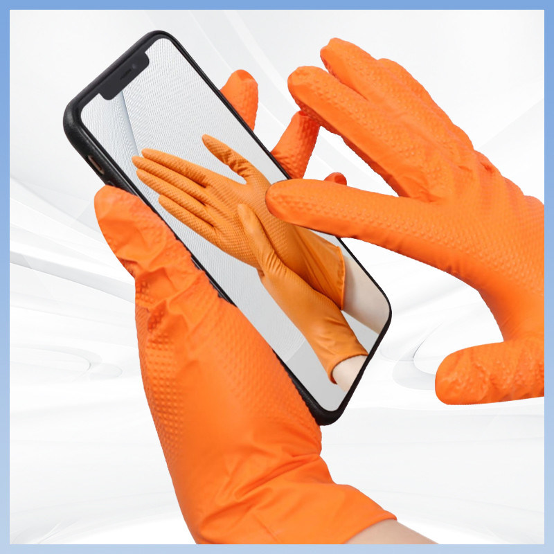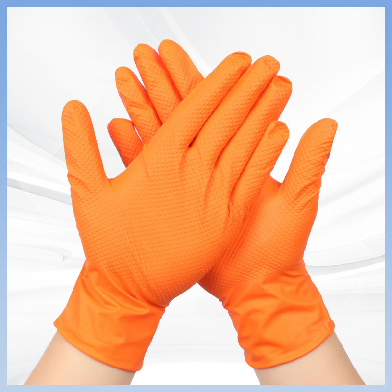 Titel: De Hoofdzaak van het autoonderhoud! Beschikbare oranje het nitrilhandschoenen van de diamantdruk om uw handen te beschermen